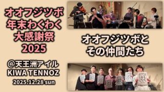 お知らせ オオフジツボ年末わくわく大感謝祭2025のご案内 今年もこの季節がやってきました。オオフジツボ年末わくわく大感謝祭!!ゲストを1名ずつお呼びする2daysでお送りします。 2025.10.10 お知らせ